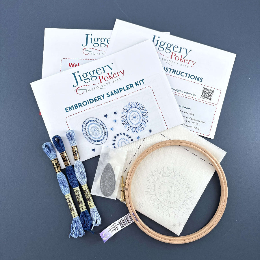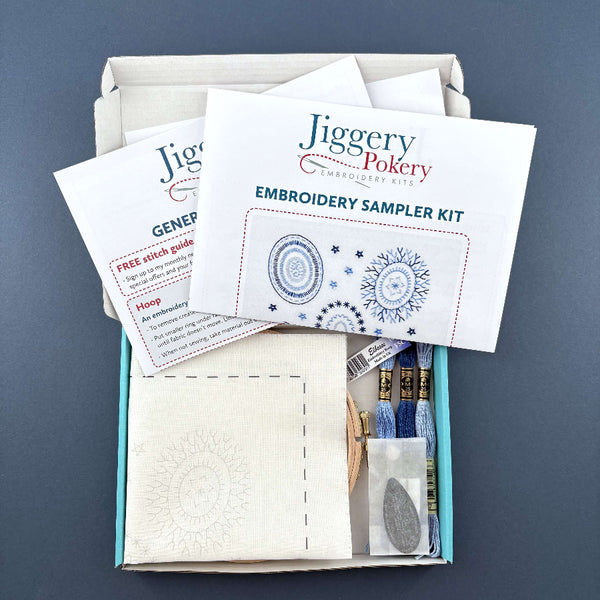 As an alternative to the learn to embroider kit, I also sell the same embroidery sampler design just as a pattern.  It comes printed onto fabric and you also get full instructions.  So that's perfect if you've already got hoops, needles and thread or you want to choose your own thread colours.