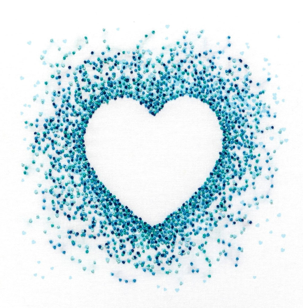 This hearts embroidery pattern comes in two colours: pink or blue. You create a large heart outline by stitching over a background of little blue or pink hearts printed onto the fabric. The easy heart embroidery makes a lovely handmade gift to celebrate special moments such as a new baby, an anniversary or a new home.