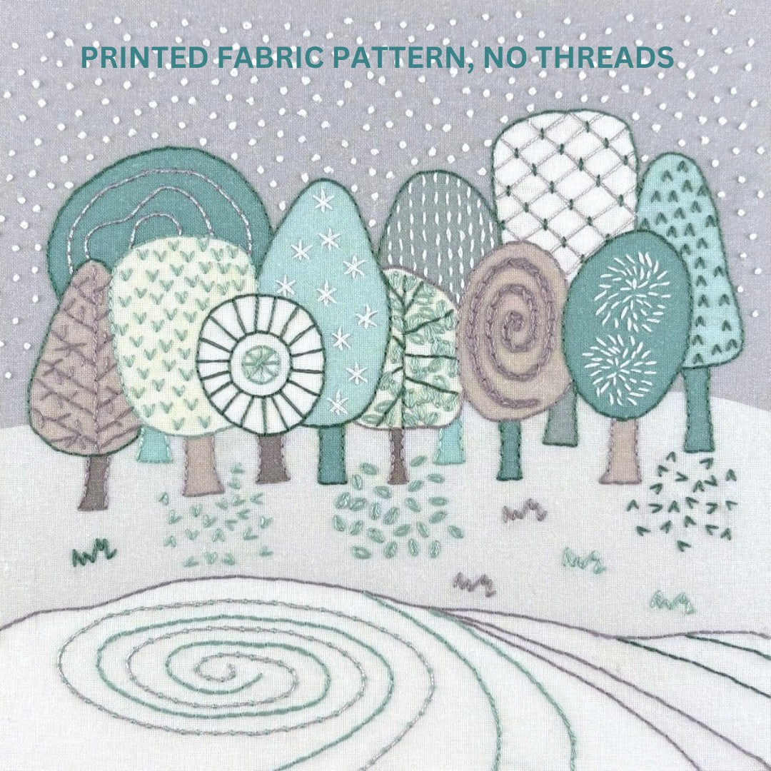 This winter trees embroidery pattern is just right for some seasonal stitching during longer winter evenings. The unique embroidery design calls for a variety of stitches and colours - soft green, mint, grey, white and metallic thread. Threads are not included but my instructions say the DMC colours I used.